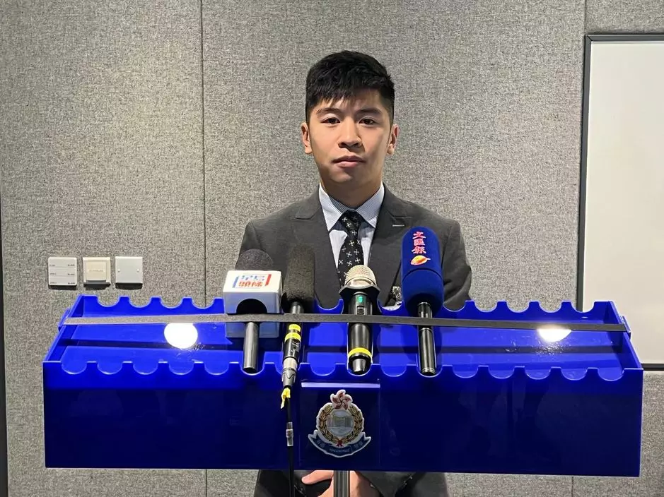 東九龍總區反三合會行動組主管高級督察馮柏羲向傳媒簡報案情。