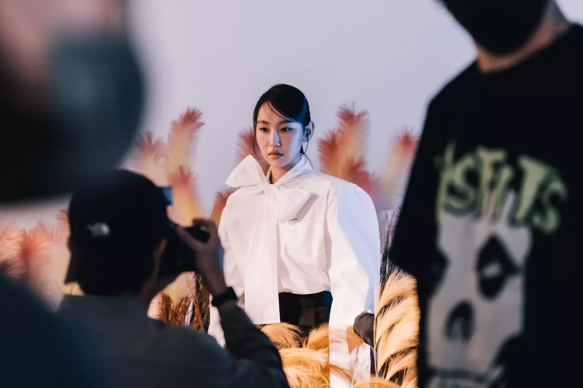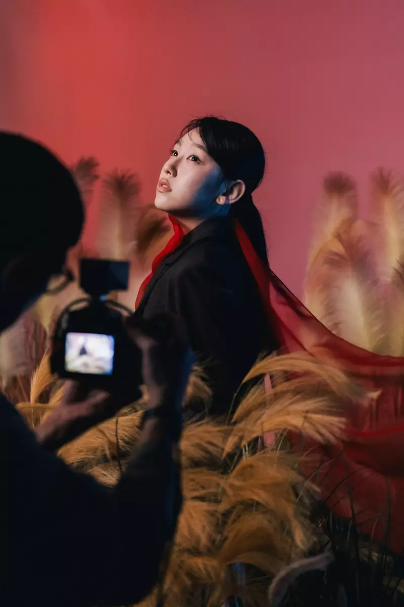 設計師及攝影團隊於現場set了一個人造田實景給Gigi拍照,Gigi一到場她已非常驚訝,馬上跳進去,「嘩,好真!有泥土添!」摸著芒草的Gigi又搞笑道:「好似摸貓貓,哈哈。」玩得非常開心!
