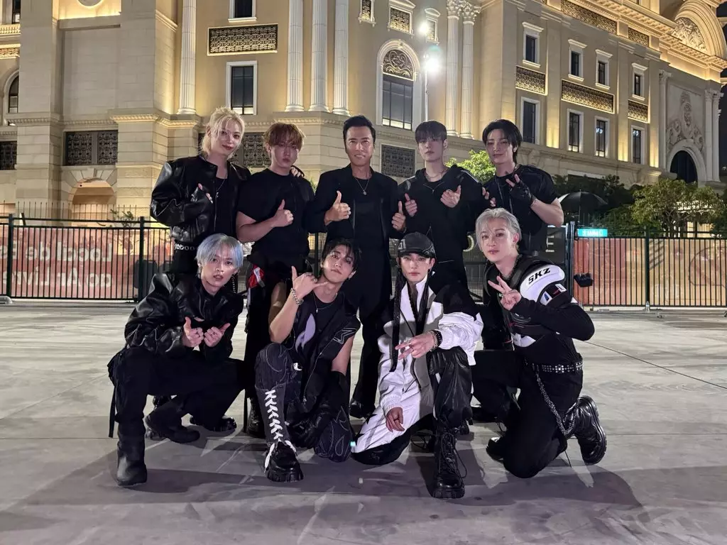 Stray Kids與甄子丹合照。Stray Kids官方X圖片