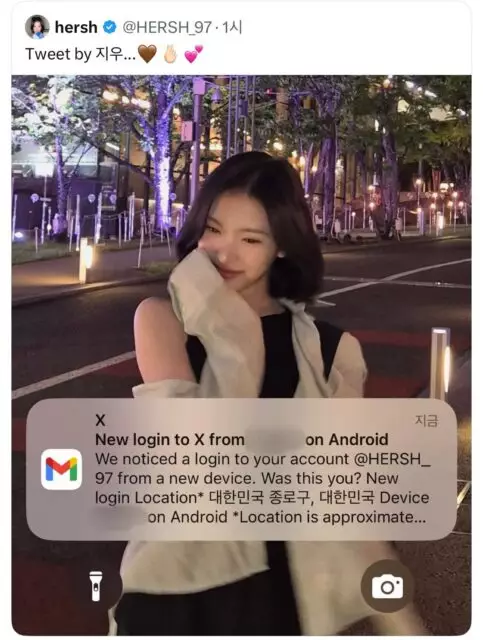 該名粉絲將Jiwoo發文的登入通知截圖分享。網上圖片