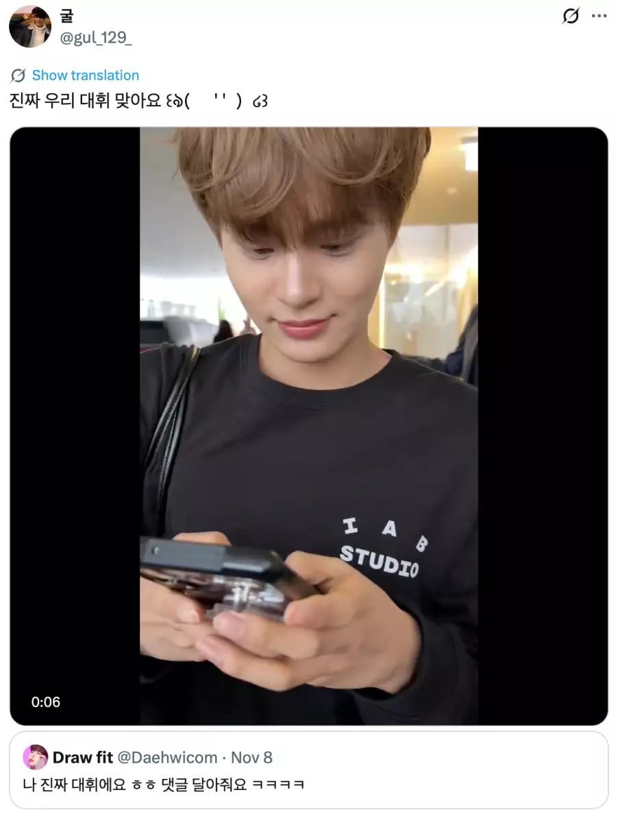 AB6IX大輝接過粉絲的手機在粉絲的帳號上發文。X截圖