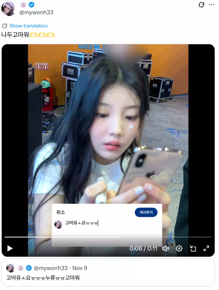 ILLIT成員Wonhee也曾應要求在粉絲帳號上發文。X截圖