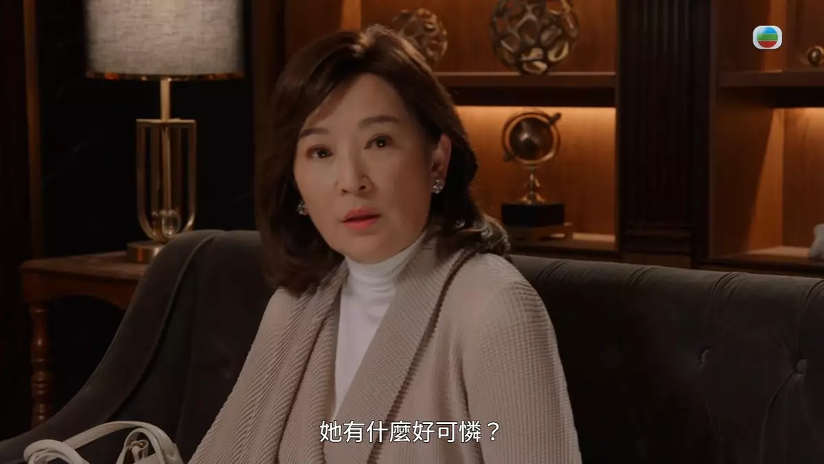 談到林澄,秋伯娘眼神更是充斥不屑及仇恨:「佢有咩咁可憐呀?佢咪又係貪…」之後更跌入仇恨不甘自憐Mode:「講可憐,我可憐咗好多年…我生嘅係長子嫡孫,但我竟然要委曲求全咁服侍佢哋二房,錢就畀佢哋擸晒」,配以Ending的狠毒眼神及無奈失笑,戲味十足。