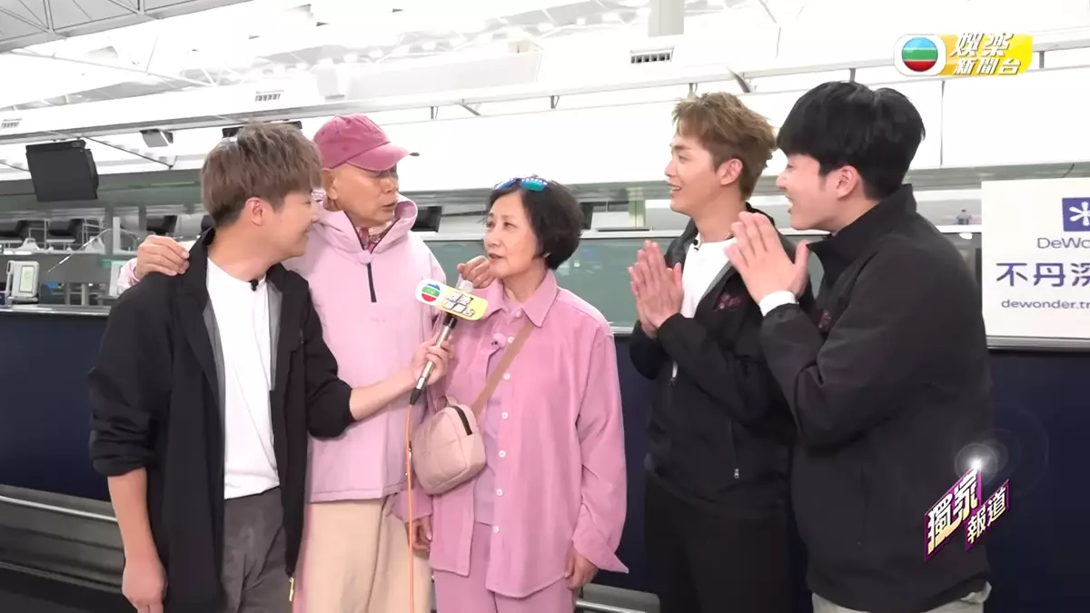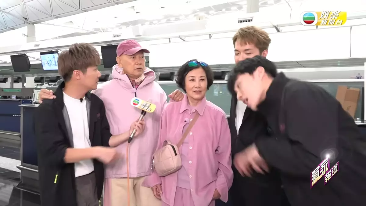 阿姐又笑言拍畢《帶阿姐看世界》頭三站後,經常掛住周嘉洛、阮浩棕及周奕瑋:「真係有掛住㗎,尤其依家就嚟要播出街。」家英哥聞言即搞笑扮呷醋:「你哋慢慢傾,我走先喇。」成功搞到三個孫仔驚驚,嘉洛搞笑補鑊:「過咗去架喇。」之後嘉洛續指原本想獻上飛吻賀阿姐出發不丹,但礙於家英在眼前不敢亂來,家英哥即搞笑點名阮浩棕代阿姐接受「嘉洛香吻」。