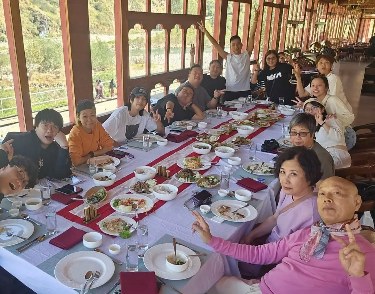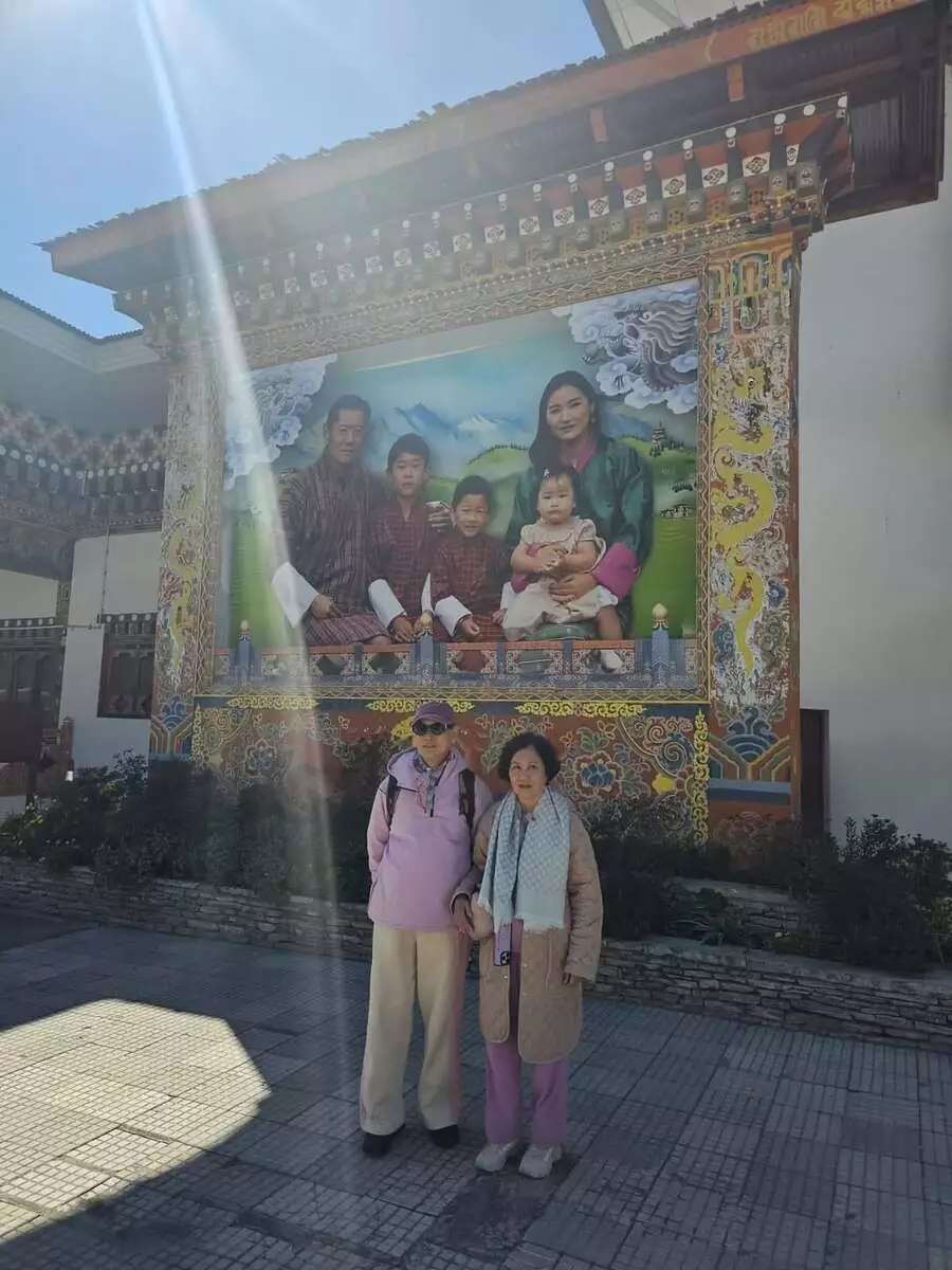 已抵達不丹開始拍攝的阿姐,亦連接在IG為《帶阿姐看世界》宣傳兼分享抵達不丹的喜悅:「節目將於11月24日開始播出,晚上1030。請密切留意及多多支持」、「第一天到不丹天氣很好,中午陽光充沛,但不熱」、「在機上聽到空姐介紹今天是不丹第四任皇帝的70歲生日,全國放假三天,所以全國上下一片熱鬧,七彩繽紛的經幡隨街飄陽(揚),到處排上太上皇的照片,印度總理穆迪也特來參加壽宴。」照片所見,阿姐與家英哥相當恩愛,一落機即合力做出「大心心」手勢,甜過蜜糖。網民則留言大讚穿了情侶裝的家英哥與阿姐又襯又靚:「紫色情侶裝好靚」、「Liza姐同家英哥着情侶裝真係絕配」。