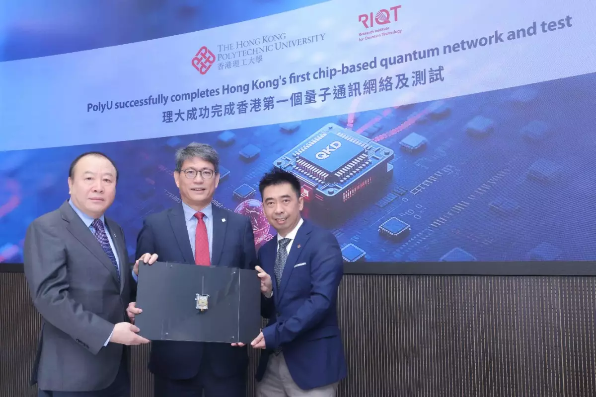 理大量子技術研究院院長、電機及電子工程學系量子工程與科學講座教授、香港全球傑出創科學人劉愛群教授團隊研發了量子通訊晶片,成功搭建香港第一個量子通訊網絡。劉教授指出:「量子通訊加密基於量子力學基本原理:量子不可複製,理論上幾乎無法破解。小小量子晶片,實為『國之重器』。它守護着香港未來數字金融的安全,更捍衛着其國際金融中心的地位。理大量子技術研究院勇於擔當,以全球領先的量子技術為此保駕護航。」