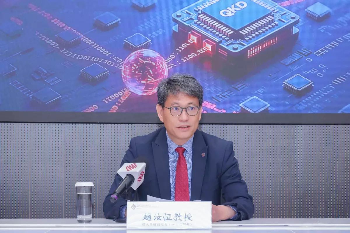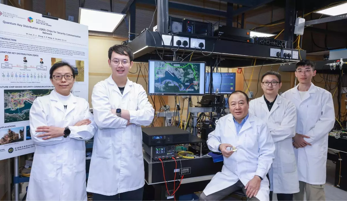 劉愛群教授強調:「有別於以光學器件組裝的量子加密系統,理大研發了新一代量子晶片,具備『高速率、高穩定性、低成本、可大批量生產』四大優勢。相關設備體積小、重量輕、易安裝,尤其適合大規模部署。更重要的是,量子晶片系統兼容性強,可適用於現行網絡通訊系統數據中心與計算中心,有助金融機構及政府部門等快速進行系統升級,以應對算力升級帶來的網絡攻擊挑戰。」