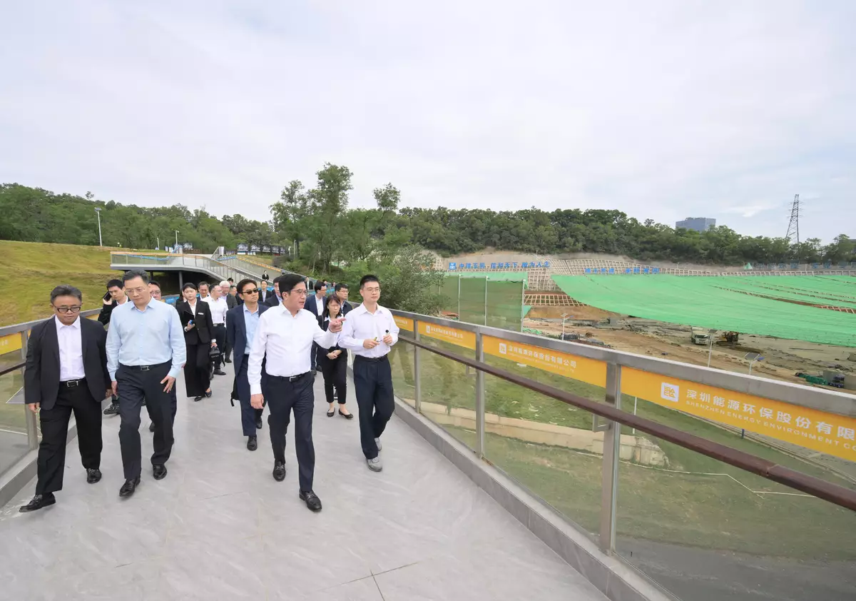 黃偉綸(右二)與特區政府代表團到訪羅湖區玉龍填埋場環境修復工程項目,了解深圳在民生保障和生態治理方面的工作和成果。政府新聞處圖片