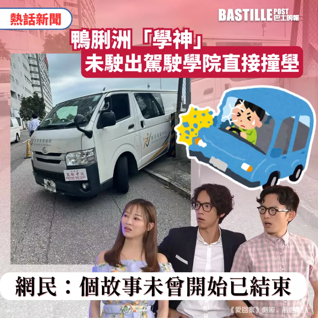 鴨脷洲「學神」未駛出駕駛學院直接撞壆 網民:個故事未曾開始已結束