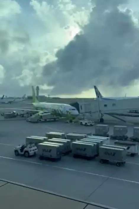 日本那霸機場員工目擊到強烈旋風疑是「龍捲風」現象,氣象廳緊急發布注意情報促民眾避難。