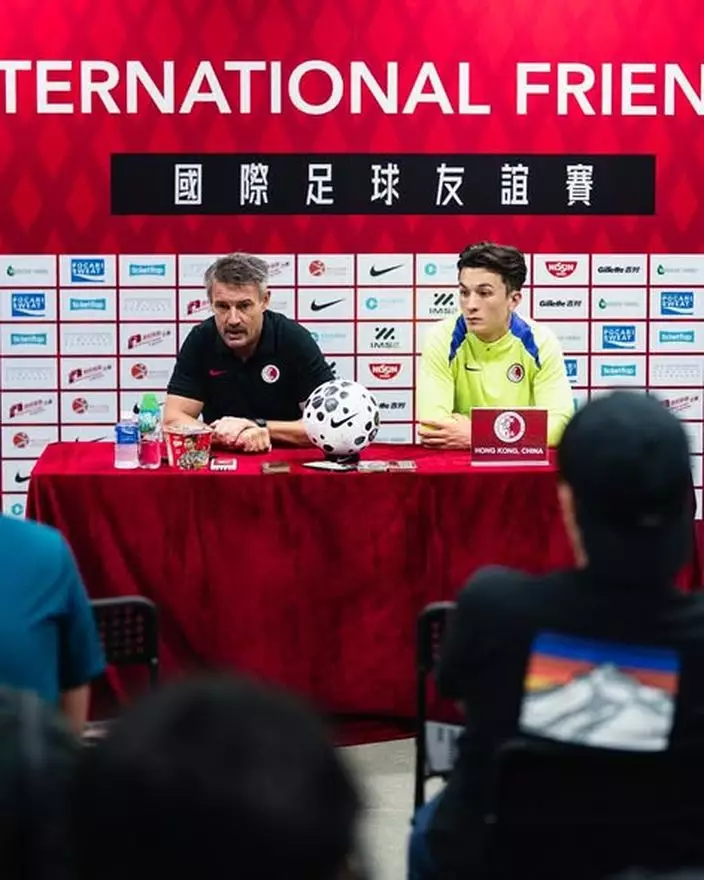 韋斯活(左)在賽前記者會說,從來都無輕視友誼賽。中國香港足球總會FB圖片