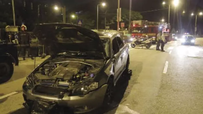 今年六月二十五日凌晨約二時,有私家車在氹仔麗景灣酒店對開突然失控,首先撞毀斑馬線旁安全島鐵柱,再撼路中石壆,右前輪飛脫後,私家車餘勢未了,繼續前行十多米始停在路中。司機一度被困車內,被消防員救出時清醒,經治療後出院,其後被揭發醉駕。
