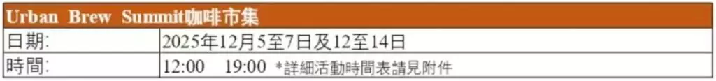 今個聖誕,南豐紗廠將於12月5至7日及12至14日隆重推出「Urban Brew Summit」,除有冠軍級咖啡師坐鎮,更雲集多國人氣咖啡品牌。