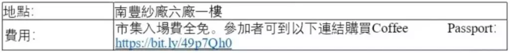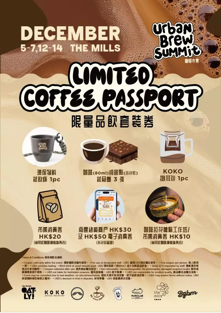 想一次過品嚐不同精選咖啡兼享精彩禮遇?市集推出「咖啡通行證」 Coffee Passport (價值HK$160),憑證可獲三張咖啡試飲或甜品試食券、咖啡渣環保杯、HK$10咖啡市集消費券、10分鐘拉花體驗或HK$20咖啡市集消費券、合共HK$80南豐紗廠電子優惠券、免費KOKO COFFEE ROASTERS咖啡掛耳包及貼紙,以及免費OATLY贈品,超值體驗一次過滿足咖啡迷多個願望!