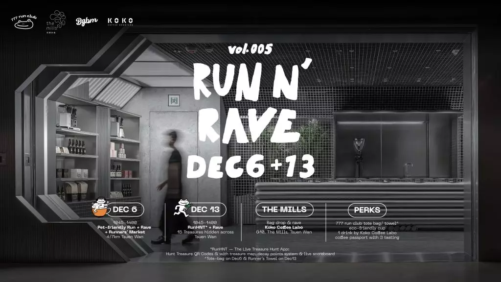 派對不一定要有酒精,也不必熬夜。南豐紗廠將帶來近年風靡年輕世代的Coffee Rave咖啡派對,讓大家在音樂和咖啡香氣中natural high!Sunset Coffee Rave由中午到黃昏現場有DJ輪流打碟,更有黑膠唱片播放懷舊中文金曲Canto Pop炒熱氣氛。777Run Club x Coffee Run N Rave帶大家用雙腳探索荃灣,跑完步再參加Coffee Rave,從早到晚都能享受滿滿多巴胺與咖啡能量。