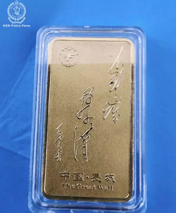 警方在母女豪宅中搜出大量財務文件、名牌手袋,以及一條40克金條(值約1萬澳元)及價值6,600澳元的賭場籌碼。澳洲警方圖片