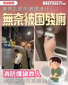 一名港男日前使用殘疾人士洗手間時遭遇尷尬事件,如廁後門鎖精準故障,港男無奈被困,最後要靠消防員到場破鎖救援。事主事後在社交平台分享自己「人生第一次打999」的經歷, 引發網民熱議。