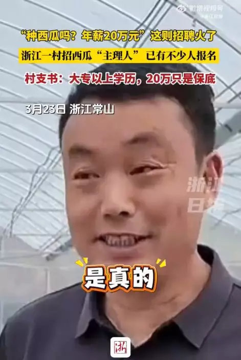 浙江衢州市常山縣東騰物業有限公司相關負責人表示,當地正計劃興建一個佔地300畝的西瓜大棚基地,現時急需招聘一名基地營運經理,即所謂的「西瓜主理人」。對方指出,學歷並非最核心條件,大專或以上學歷即可,但相比學歷,更看重應徵者是否具備真正的能力與經驗。