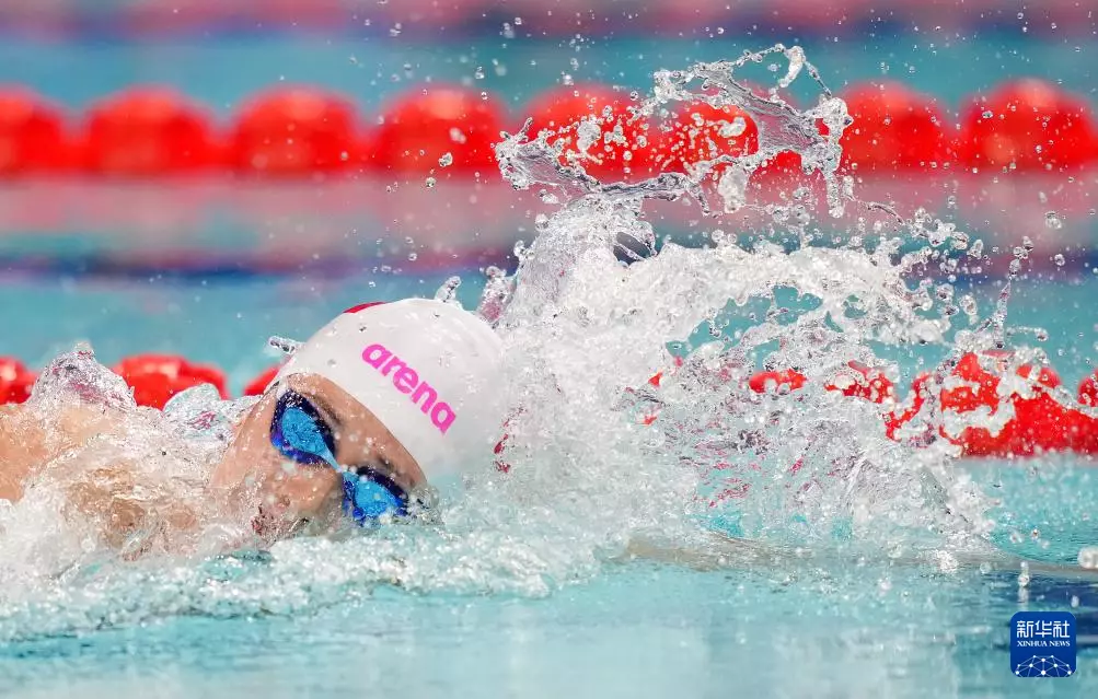 何詩蓓100米自由泳預賽小組排第一,躋身傍晚半決賽。新華網圖片