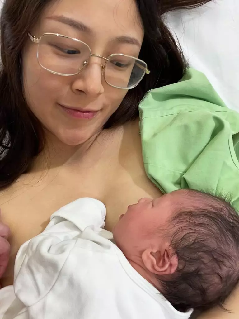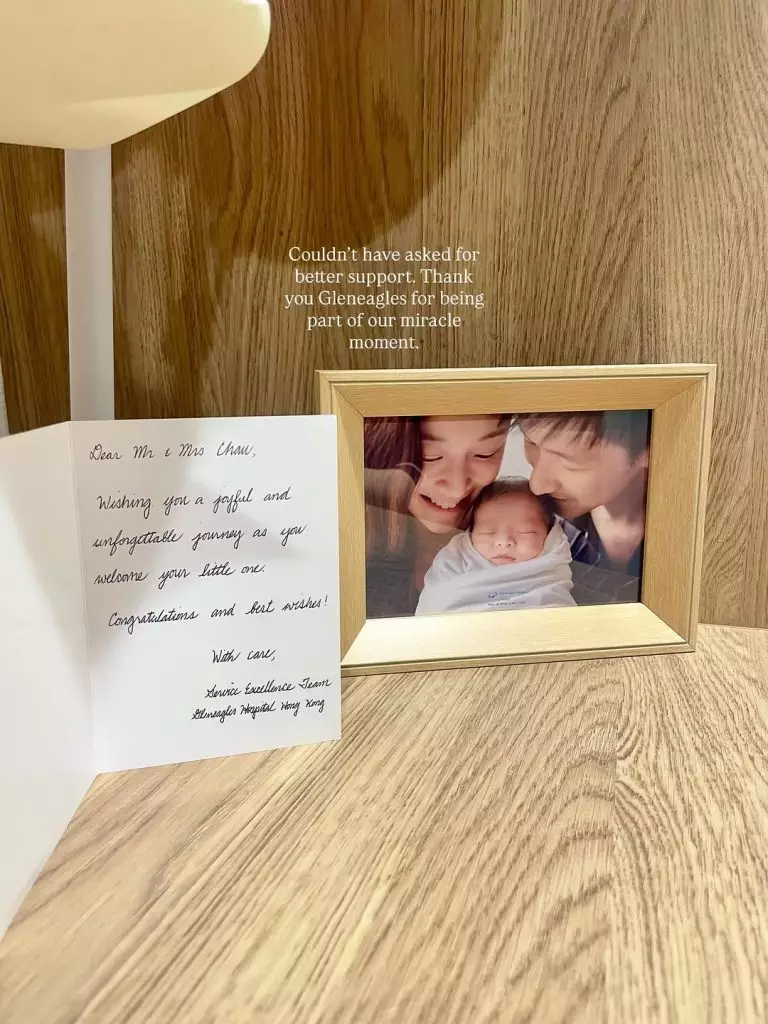 她續說:「Ample Medical Center 安寶醫務中心 @amplecentre 非常專業嘅婦產科 #楊式穎醫生 多謝你喺呢九個月令我哋一直都好輕鬆無壓力咁陀B。 最重要嘅係,多謝你喺最關鍵嘅時刻幫我哋作出最正確嘅決定,令我可以順利自然分娩。 而且生產過程仲要手勢快靚正,令我復原進度好理想。 麻醉科 #鄺敏琪醫生 我一直都希望可以唔使打無痛,但係經歷咗四個鐘頭嘅十級痛,呢針無痛真係我嘅救命針,效果即時見效。 最深刻嘅係,通宵搏鬥咗成晚之後,諗住瞓一陣回下氣;點知瞓醒一覺,護士已經話見到BB頭髮,幾下push push之後,BB就已經嚟到呢個世界喇。 兒科 #沈澤安醫生 由BB 出世到出院都細心觀察BB狀況,令我哋可以安心咁擁抱呢個新生命。 仲解答咗我哋呢對新手父母嘅唔同問題,由淺入深咁令我哋唔使不必要地擔心。 #newborn #blessed」