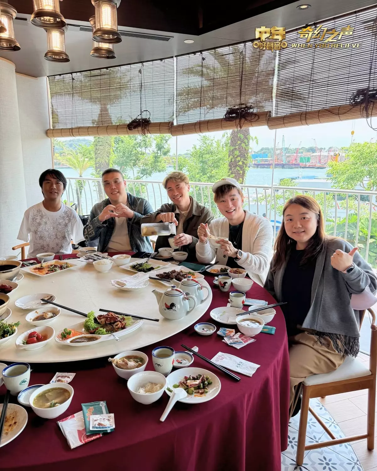 一班《中年好聲音》家族在台前勁歌熱舞,台下老友鬼鬼,演出前一同享受新加坡美食。