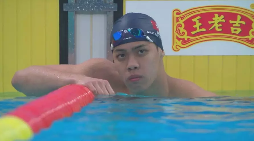 麥世霆成績為2分15秒35,小組第一,晉級晚上的半決賽。有線新聞截圖