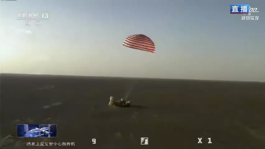 返回艙着陸。央視截圖