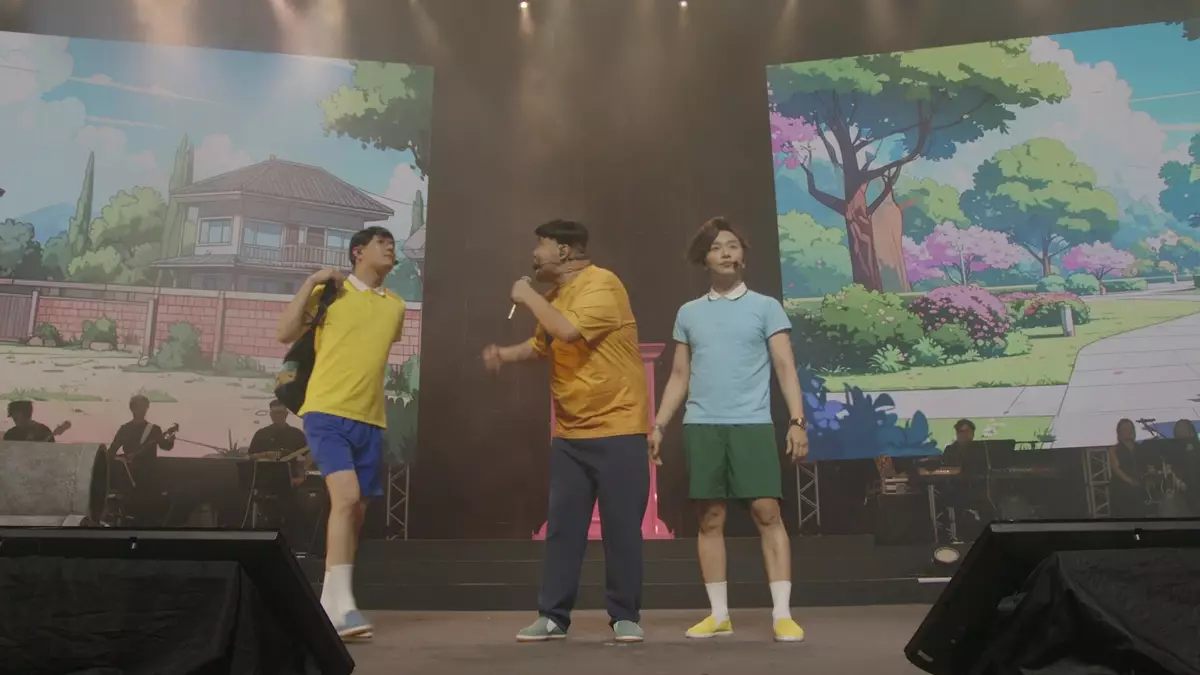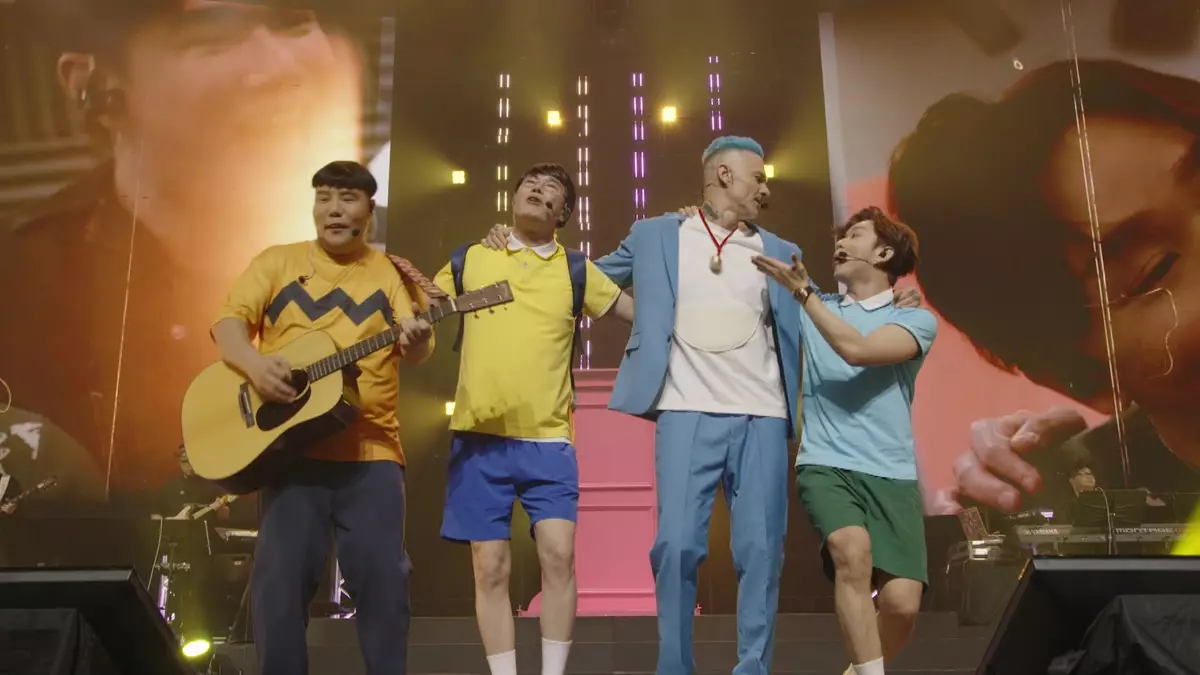 另一個焦點落在,「中3生」大玩Cosplay,由武俠走入動畫世界:張與辰戴眼鏡飾「大雄」,劉洋以超短冬菇頭演「胖虎」,王鄭浚仁以標誌斜陰頭演「小夫」,最後由瘦版「多啦A夢」占士丁丁壓軸登場,四人合唱披頭四作品,劉洋更即場彈奏木結他,「夾Band」概念劃上Happy Ending。