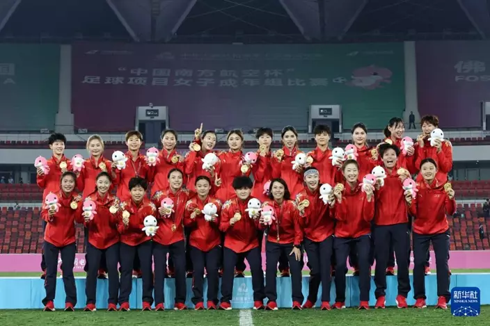 香港教練陳婉婷率江蘇隊奪足球女子成年組金牌。圖片來源:新華社