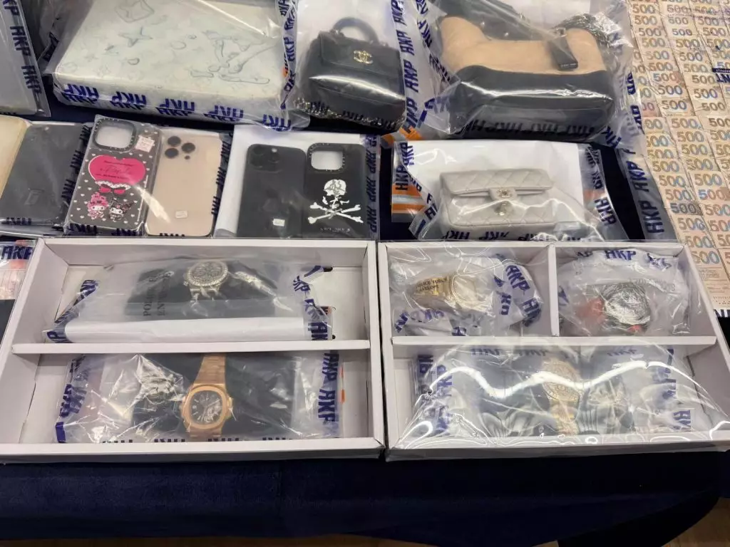 行動中警方在首腦收藏黑錢的私人住宅單位入面,檢獲約1600萬現金及5隻總值約700萬名錶。整個行動檢獲的證物價值超過2470萬,包括現金,名貴手錶、首飾、手袋、外幣及大量銀行文件等等。警方亦凍結其中3名被捕人銀行戶口d 160萬港元。