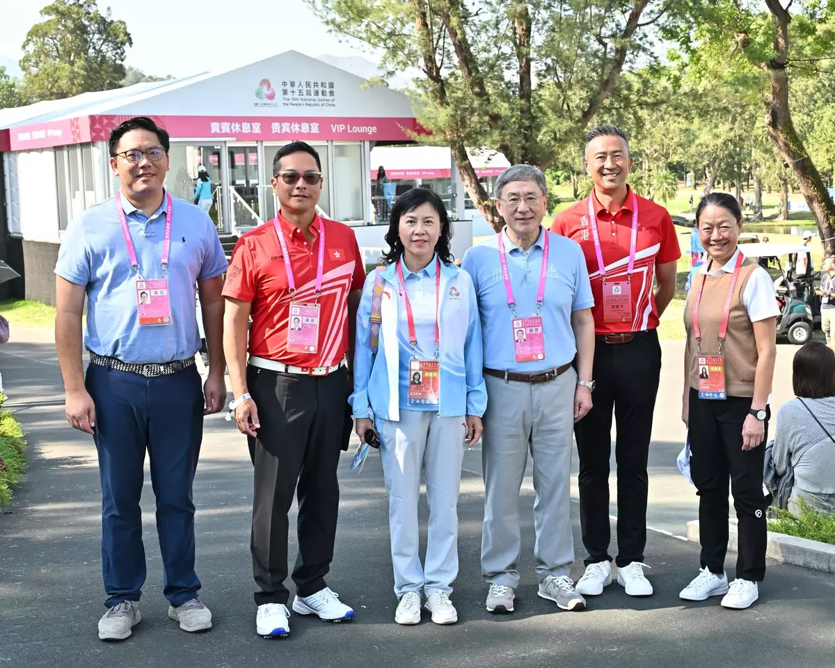 全國運動會高爾夫球比賽煞科日,政務司副司長卓永興和運輸及物流局局長陳美寶、民政及青年事務局副局長梁宏正和新聞處處長廖李可期齊齊到粉嶺高爾夫球場觀戰,並為香港隊打氣。