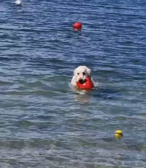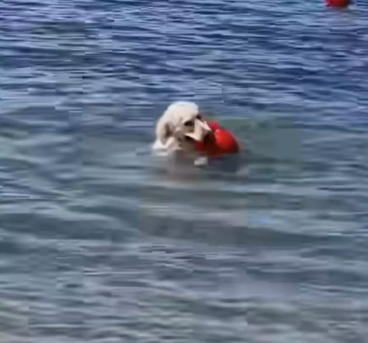 誤認紅色浮標為玩具球 金毛犬跳海猛追