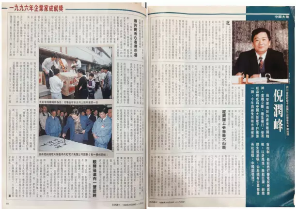 倪潤峰榮獲《亞洲週刊》頒授「九六年度企業家成就獎」,是亞洲五人中唯一的中國企業家。(1996.亞洲周刋)
