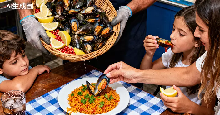 一對德國籍夫妻帶著兩個孩子在多家街頭小吃店用餐