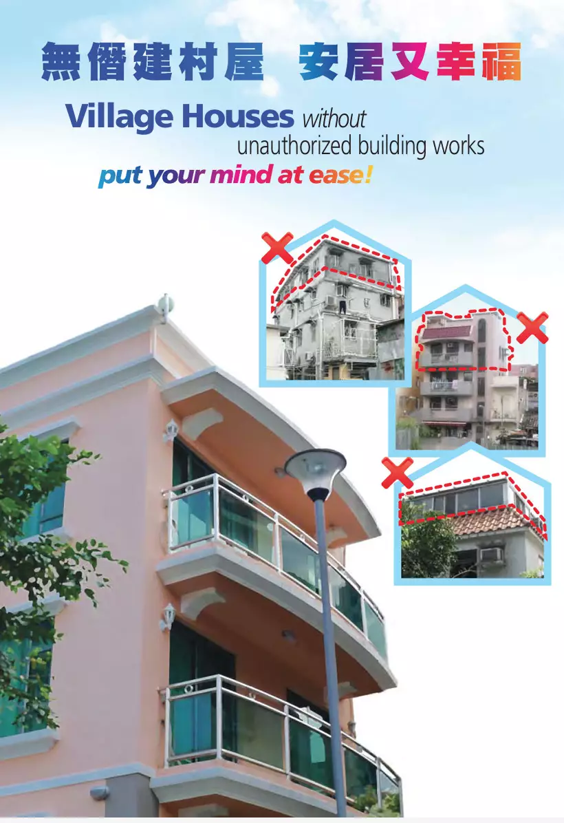 屋宇署有關村屋僭建單張。屋宇署圖片