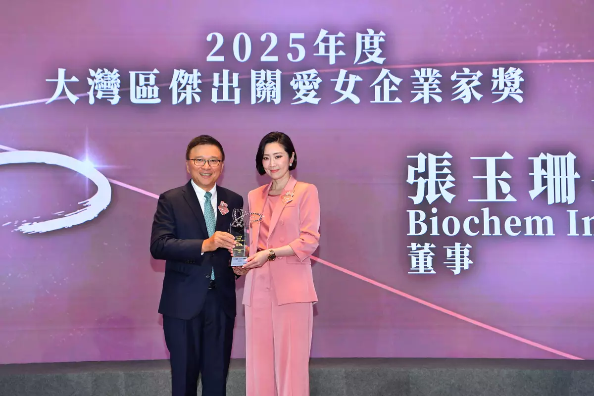 由新城財經台及香港中小型企業聯合會攜手合辦的《大灣區傑出女企業家獎2025》頒獎典禮,今日(11月17日)假香港麗晶酒店盛大舉行。活動匯聚數十位政商界翹楚,表彰在粵港澳大灣區具卓越成就及積極推動社會發展的女性企業家,今年共有28位在不同商業領域中表現卓越的女性獲得殊榮,其中,現任Biochem Investments Limited 董事張玉珊博士榮獲「大灣區傑出關愛女企業家」獎項。