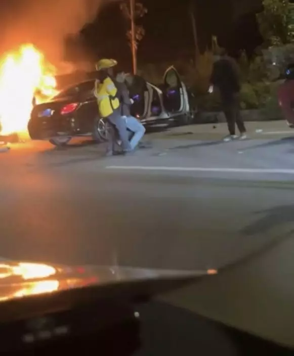 鄧亞群回憶,事發於凌晨0時40分左右,他經過事發路段時見一輛私家車車頭起火,另一輛平治車則停在不遠處。當時平治車的傷者已自行脫困並坐在路邊,向他示意起火車內仍有人被困。他聞言立即奔向起火車輛,「我打開車門,車內已經有煙了,安全氣囊爆開,駕駛員昏迷了。我就趕緊解開安全帶,將他拽出了駕駛室,扶到了空地上」。