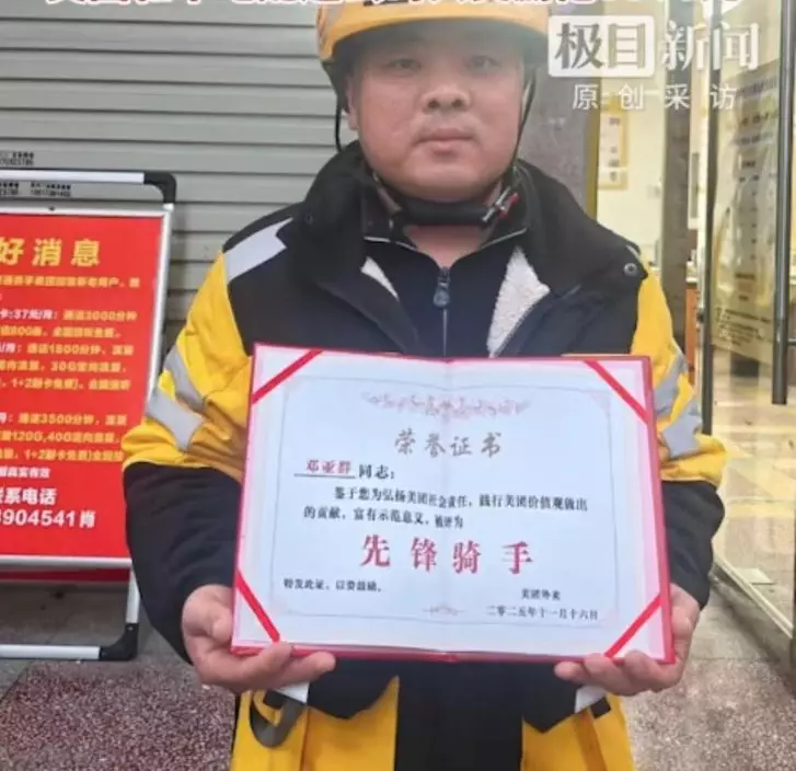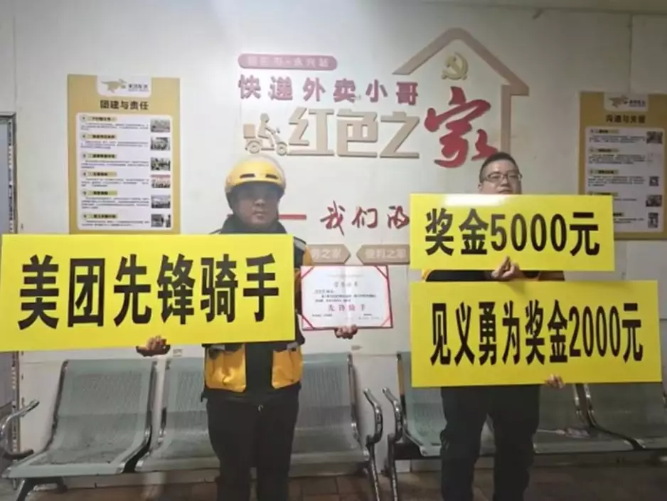 事件曝光後,美團方面第一時間啟動「見義勇為專項獎勵」,授予鄧亞群「先鋒騎手」榮譽稱號,並向他發放5000元(人民幣,下同,約5500港元)獎金及錦旗、證書等,以表揚他的英勇行為。此外,他所屬的本地配送公司亦決定額外獎勵2000元人民幣(約2200港元)。
