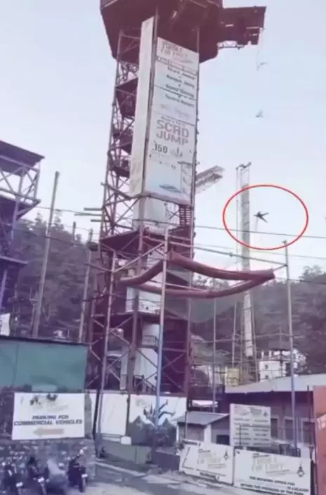 印度男在遊樂園玩笨豬跳,結果因安全繩突斷裂從55米高空直墮鐵皮屋頂上,導致身受重傷命危。