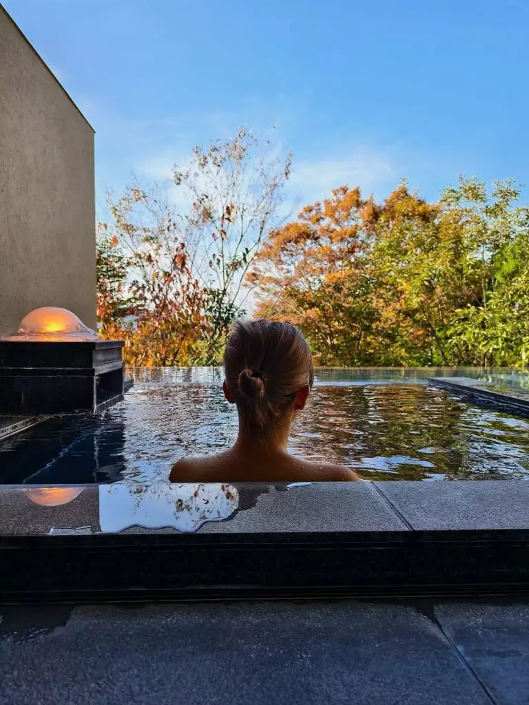 關心妍(Jade)與商人老公楊長智為慶祝結婚16周年,撇下9歲女兒赴日本九州享受二人世界。她在IG分享的旅行片照中,罕見半裸浸溫泉,畫面浪漫,而攝影師正是其老公。