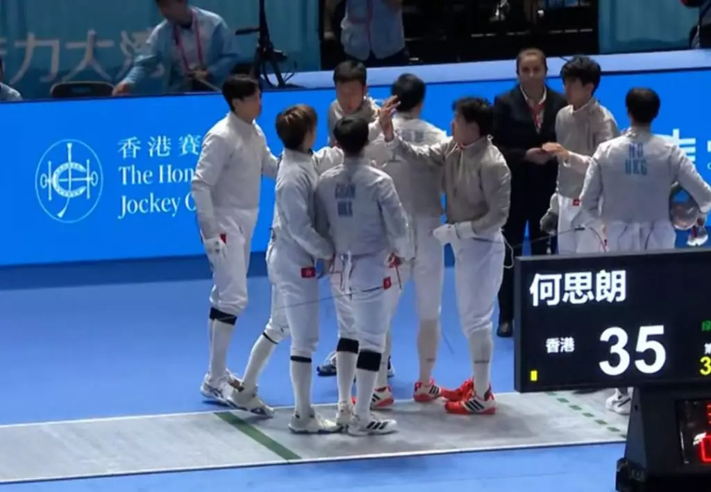 港隊男子佩劍團體賽不敵上海,八強止步。網上截圖