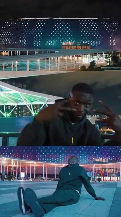 Khaby 看到主場館外牆 LED 打出香港歡迎Khaby的字樣,讓他直呼: 「太震撼了﹗」。旅發局提供