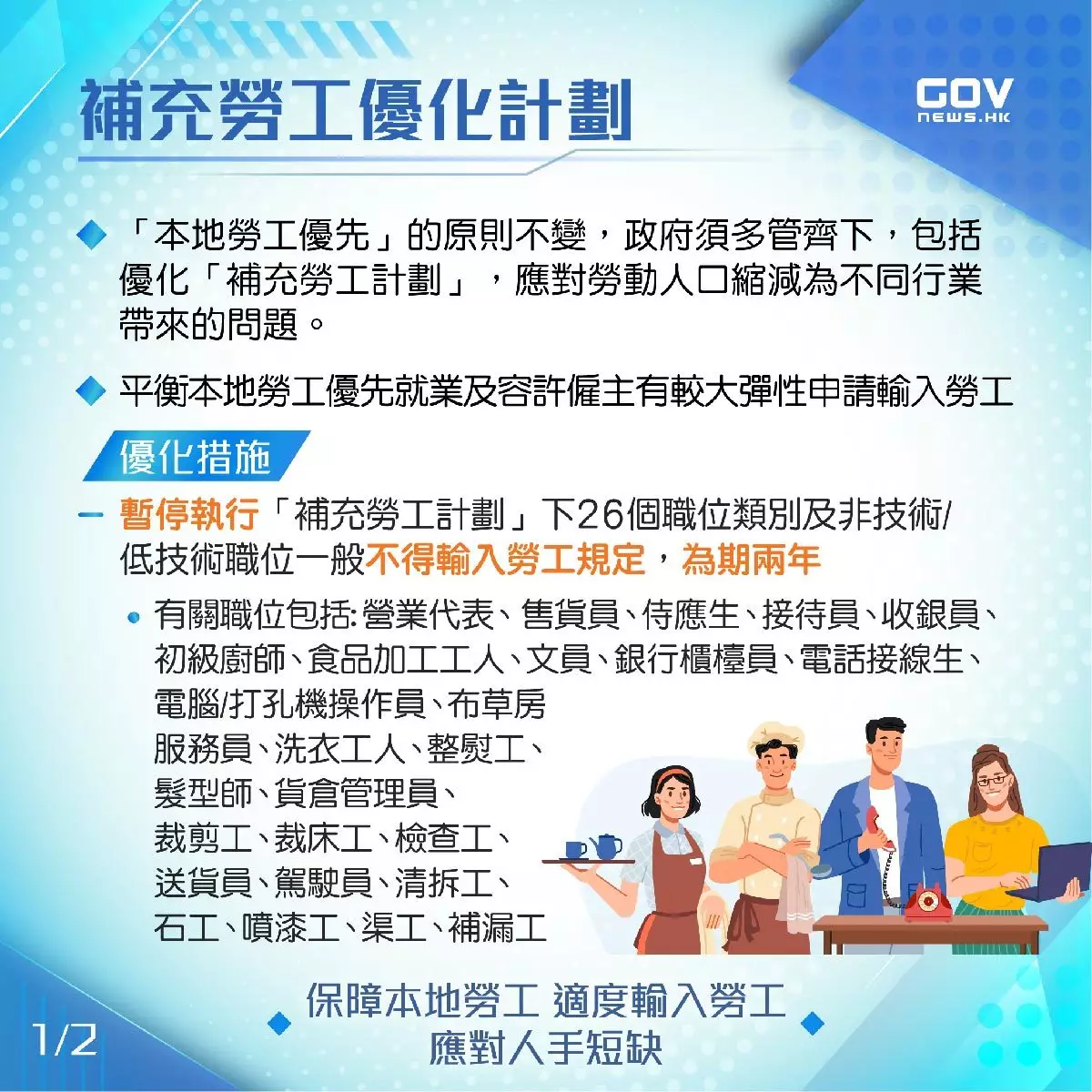 發言人又說,優化計劃訂明,僱主如違反勞工或入境法例、優化計劃或標準僱傭合約的規定,勞工處會作出行政制裁,包括撤銷僱主已獲得的輸入勞工批准,以及拒絕處理僱主隨後提交的申請。