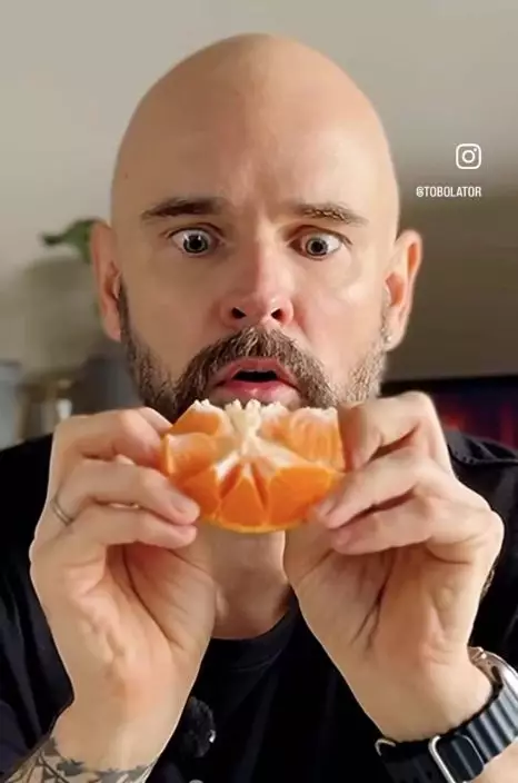 日前,一名擁有逾168萬粉絲的帖主「tobolator」於Instagram上轉發一名女網友示範「免剝皮吃橘子」的影片。畫面中,女網友先將橘子放在砧板上,橫向從中間一刀切開,再以雙手從底部往上推,果瓣隨即鬆開分散,能直接用手指夾起食用。為了驗證此方法可行,「tobolator」親自嘗試並拍片示範,結果證實「真的行得通」。