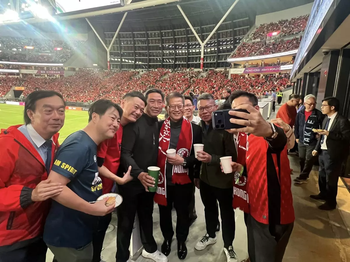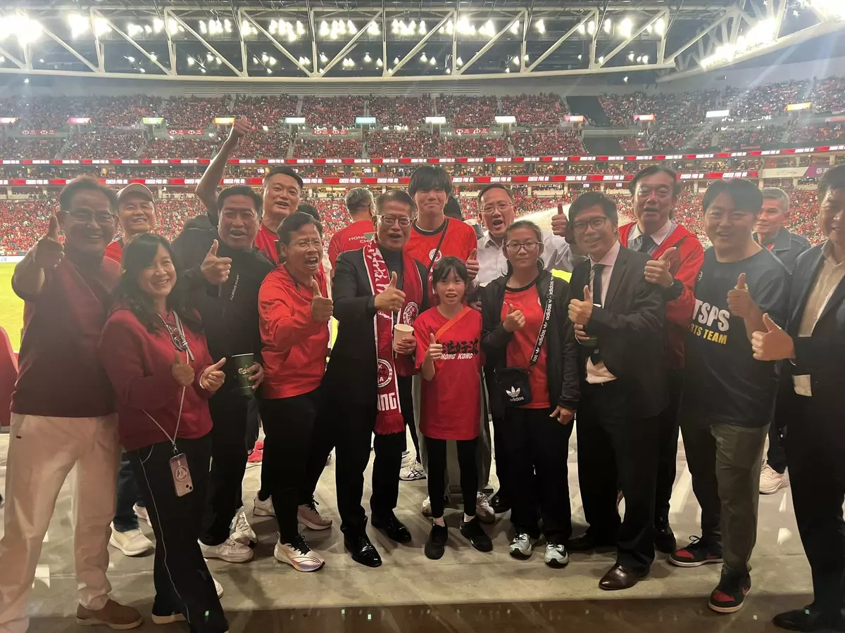陳茂波在社交專頁說,香港球迷坐爆啟德主場館,現場一片紅海、氣氛熱烈、情緒高漲,大家都為港隊全力打氣。