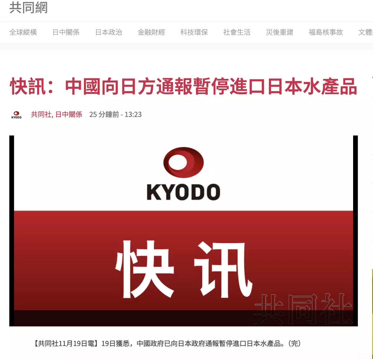 中日關係近期因日本首相高市早苗的涉台言論而轉差。據日本共同社報道,11月19日,中國政府已向日本政府通報暫停進口日本水產品。