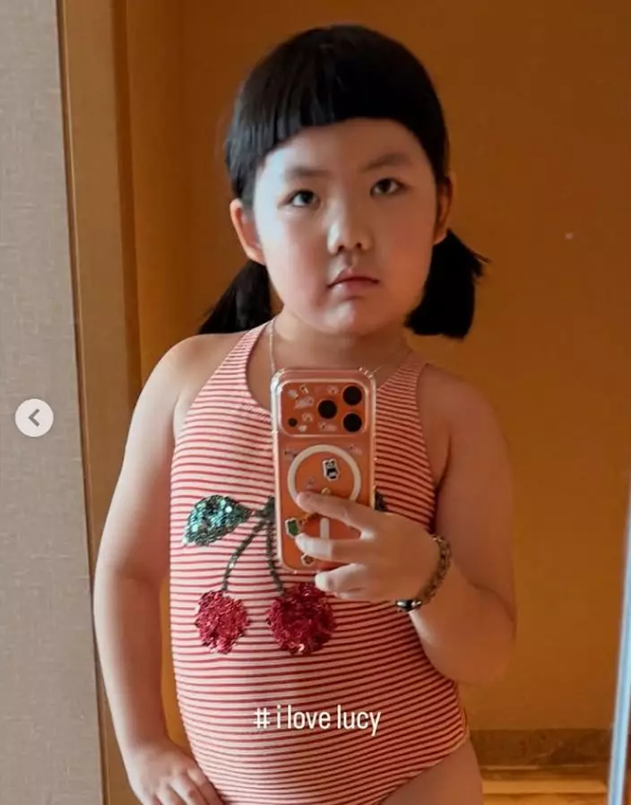 Sophia在IG晒出Lucy親親小白鯨的照片和影片,並留言:「急不及待想同大家分享上星期去三亞同小白鯨親親嘴嘅互動!小白鯨真係超可愛!」相中可見,Lucy完全不害怕,雙手抱着小白鯨的頭,還與小白鯨錫錫,畫面相當有愛!不少網民都留言讚Lucy和小白鯨都好可愛,「兩個小朋友都好可愛」、「好得意」、「Sweet sweet到呢⋯⋯兩個小朋友都係『甜笑』」,佘詩曼亦留言:「一張非常值得紀念嘅照片」。