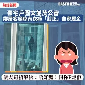 豪宅戶圖文並茂公審鄰居客廳晾內衣褲「對正」自家屋企  網友奇招解決:唔好嬲!同你P走佢