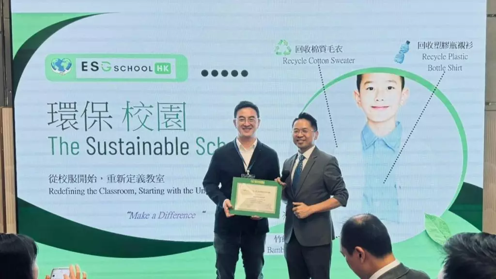 ESG School HK 是香港首個以「量化數據」推動校園可持續發展的綠色企業,透過引進歐盟ESG標準,將環保校服作為切入點,讓學校師生參與減碳實踐。五所獲獎學校——包括新界喇沙中學、打鼓嶺嶺英公立學校等等——透過校服回收與再造,合共減少超過5,000公斤碳排放,相當於一輛汽油車一年的排放量。