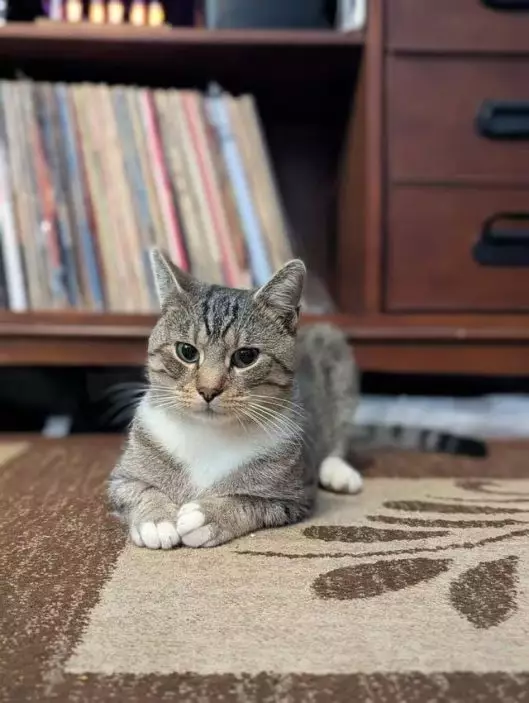 女子憶述,這隻虎斑貓性格親人,很快便與家人打成一片。某日她試著打開貓門觀察,沒想到牠毫不猶豫地直接闖入屋內,神態自若彷彿早已是這個家的成員。之後,虎斑貓經常進出屋內,最終乾脆「長住」下來。突如其來的緣分,讓女子決定將牠留下,在前往獸醫檢查確認為無人飼養的流浪貓後,正式收養並改名「阿爾伯特」(Albert)。